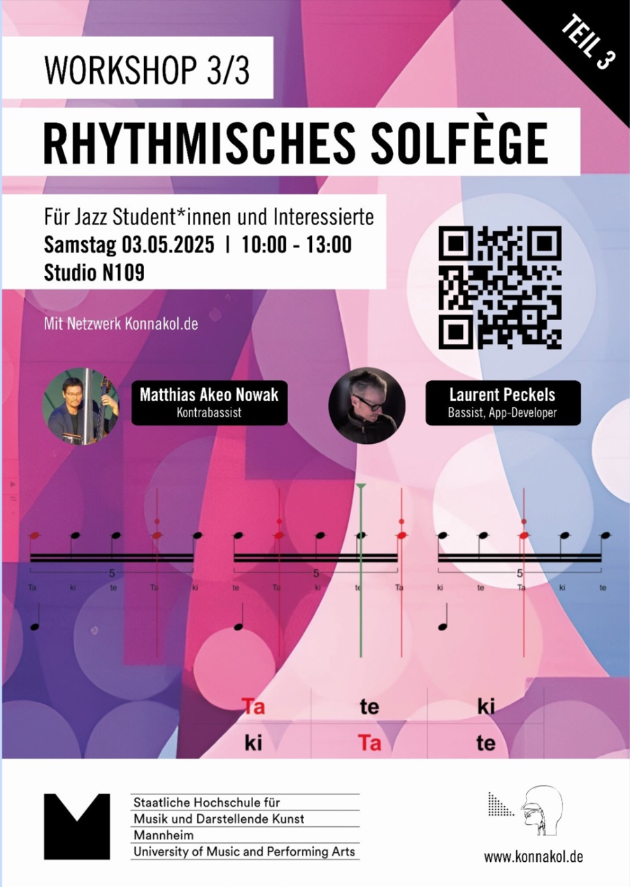 Workshop and video series on k-metronome and a Western approach to konnakol at the University of Music and Performing Arts Mannheim.